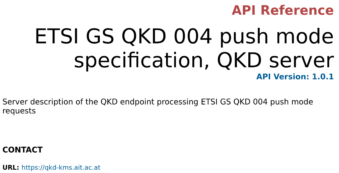The AURORA KMS by AIT is well known for the innovative ETSI GS QKD 004 derived push mode API, where a QKD device can transfer generated keys immediately to the KMS, therefore key handling and management is offloaded to the KMS. This has first been published as a concept in the related paper, now the full API specification up to the last details was published open source on GitHub.